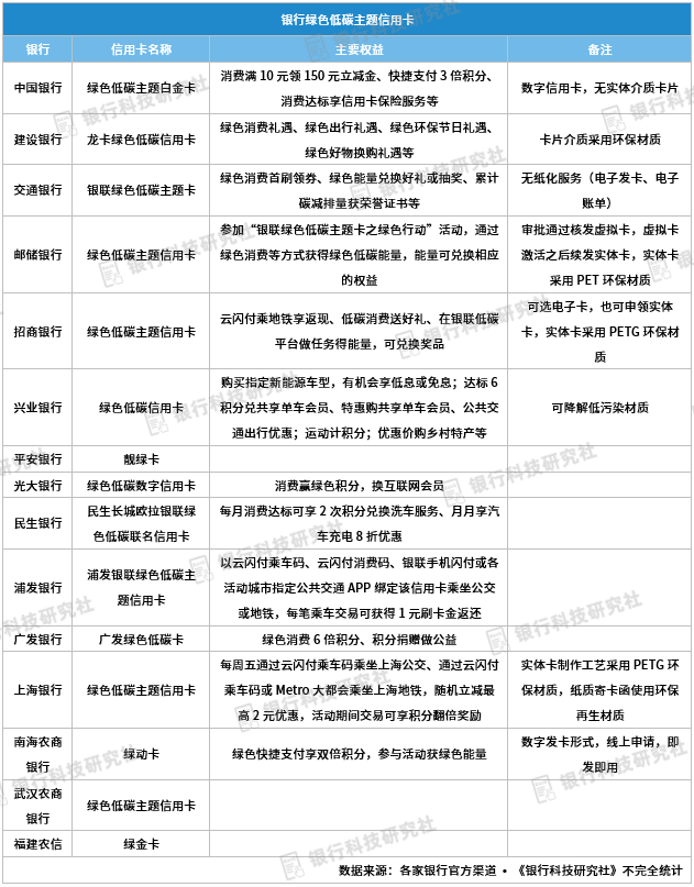 大中小行均有推出绿色低碳信用卡,银联推出低碳小镇活动