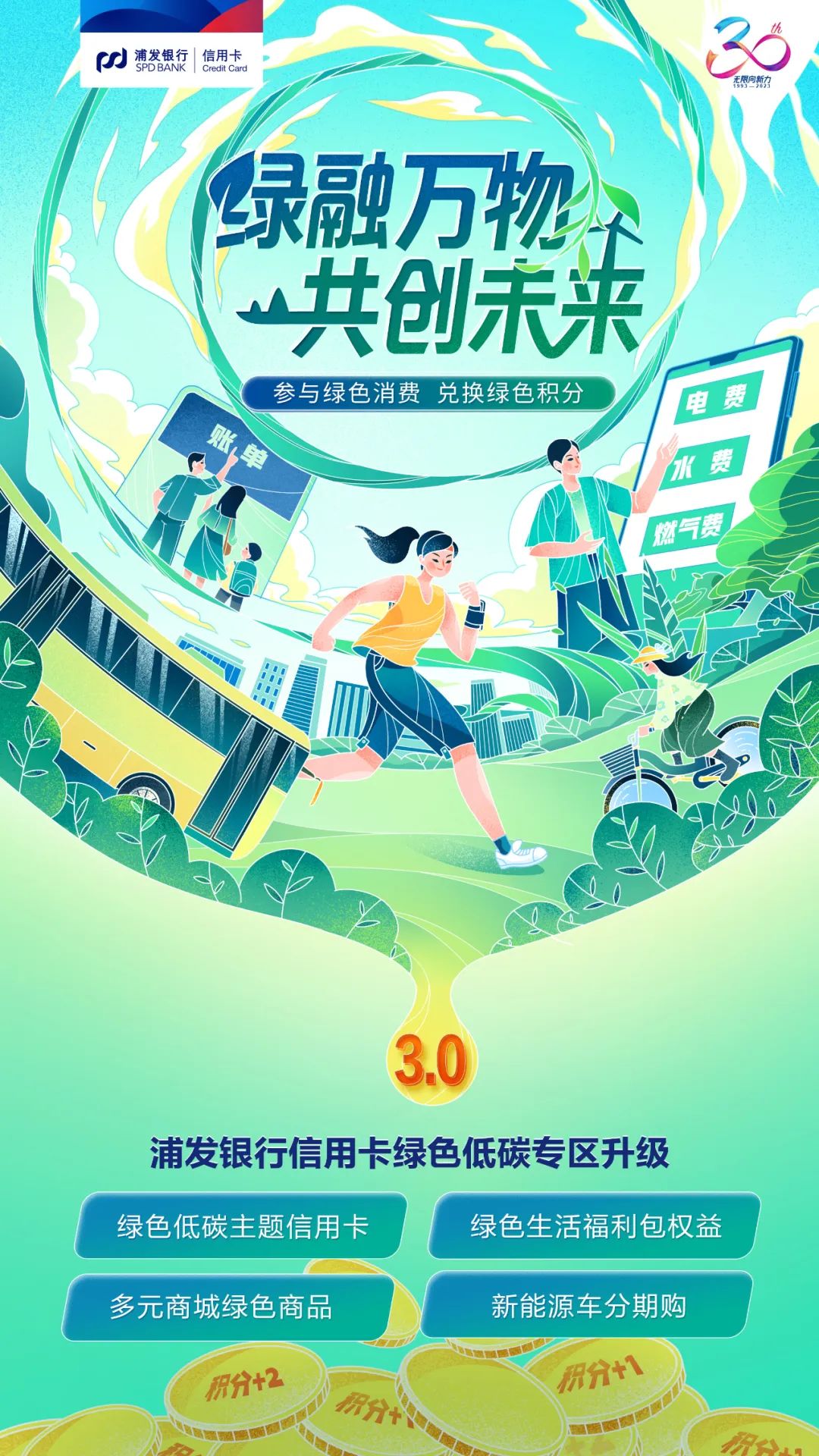 作为绿色低碳信用卡的先行者,浦发信用卡注重其业务顶层设计,构建了完整的绿色金融产品框架和服务体系。从2021年发行“浦发银联绿色低碳主题信用卡”至2023年绿色低碳服务升级至3.0,浦发信用卡从产品到权益,贴近绿色消费生活场景,为用户搭建绿色消费生活平台。并在浦大喜奔APP上线“绿色低碳专区”,可量化地展示了用户的减碳行为。同时也推出了绿色生活福利包、多元商城购绿色商品以及更丰富的新能源车分期等惊喜好礼。浦发信用卡将这些实实在在的优惠融入绿色消费场景当中,引导更多用户走向绿色低碳品质生活,树立了绿色消费风向标。